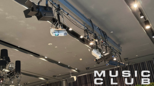 プロジェクターなどは機材は目に入りづらいバトンに吊り、機材が装飾の邪魔にならないように致しました。
